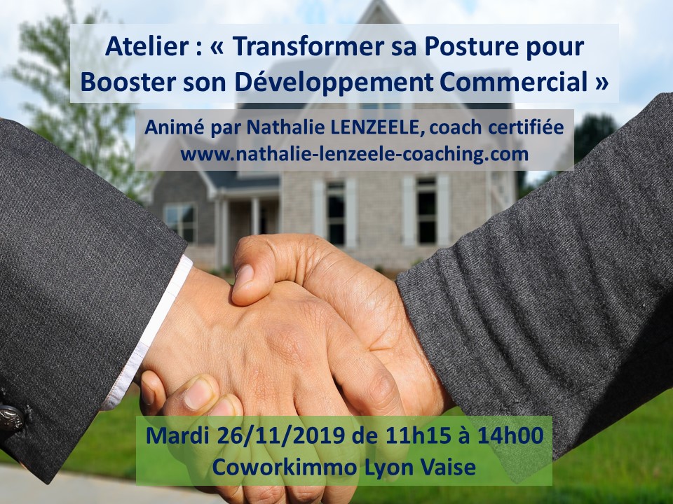 mon prochain atelier aura lieu ce mardi 26/11/2019 chez Coworkimmo Lyon sur le thème « Transformer sa Posture pour Booster son Développement Commercial ».