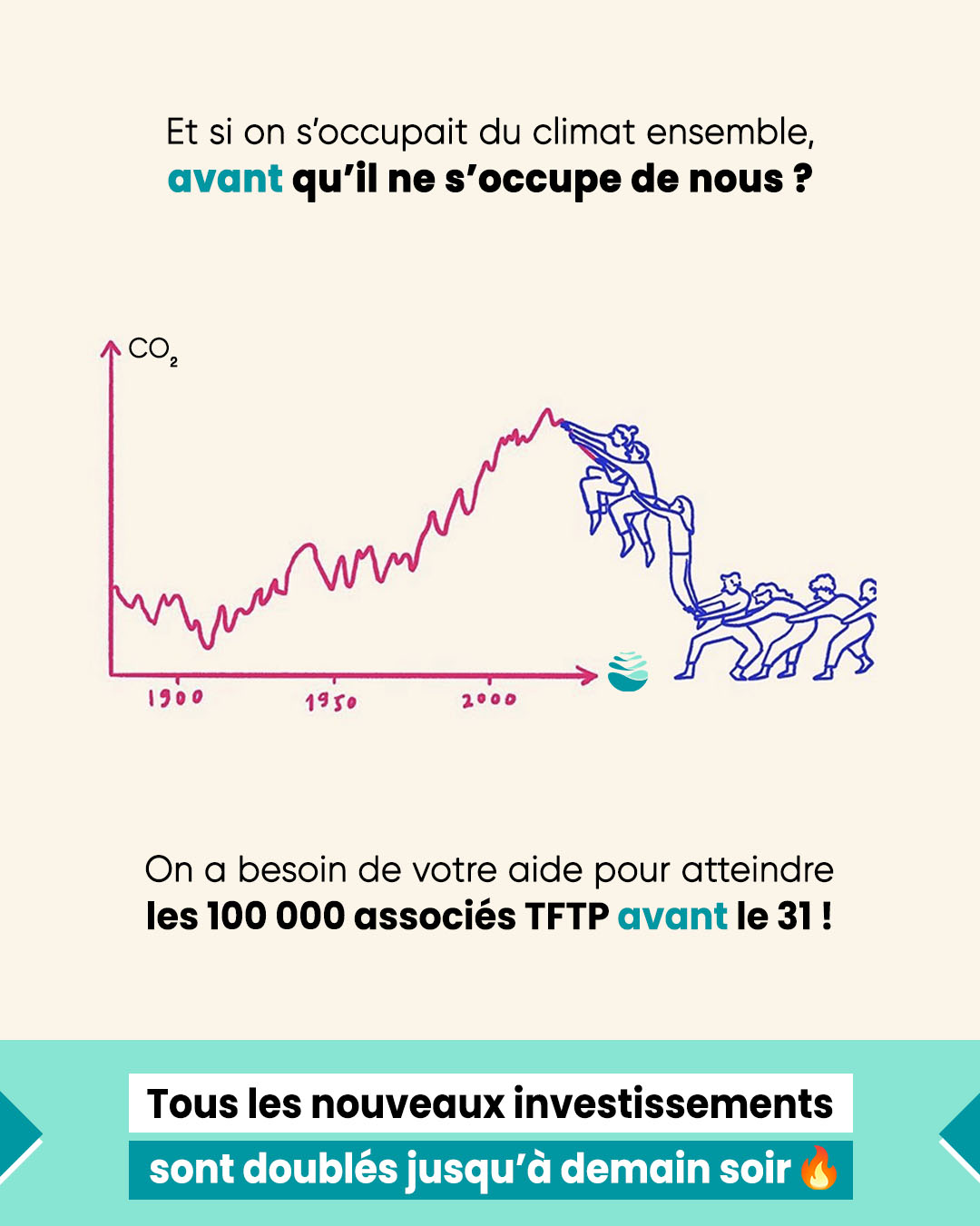 Nous essayons d’atteindre les 100 000 personnes impliquées avec Time for the Planet avant demain soir ! Il reste très peu de temps pour participer ! C’est le moment ou jamais 💚