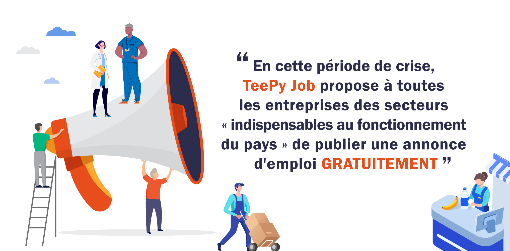 📣 Face à l’épidémie de coronavirus et aux mesures exceptionnelles qui en découlent, TeePy Job a décidé d’accompagner les secteurs essentiels « indispensables au fonctionnement du pays «