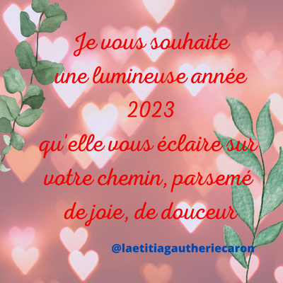 Laetitia Gautherie Caron, praticienne certifiée en Hypnose, Kinésiologie, Psychothérapie Fleurs de Bach, je vous présente mes meilleurs vœux pour cette nouvelle année.